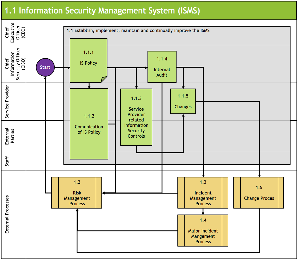 In einem Prozessdiagramm für das Information Security Management lässt sich das wie folgt darstellen: