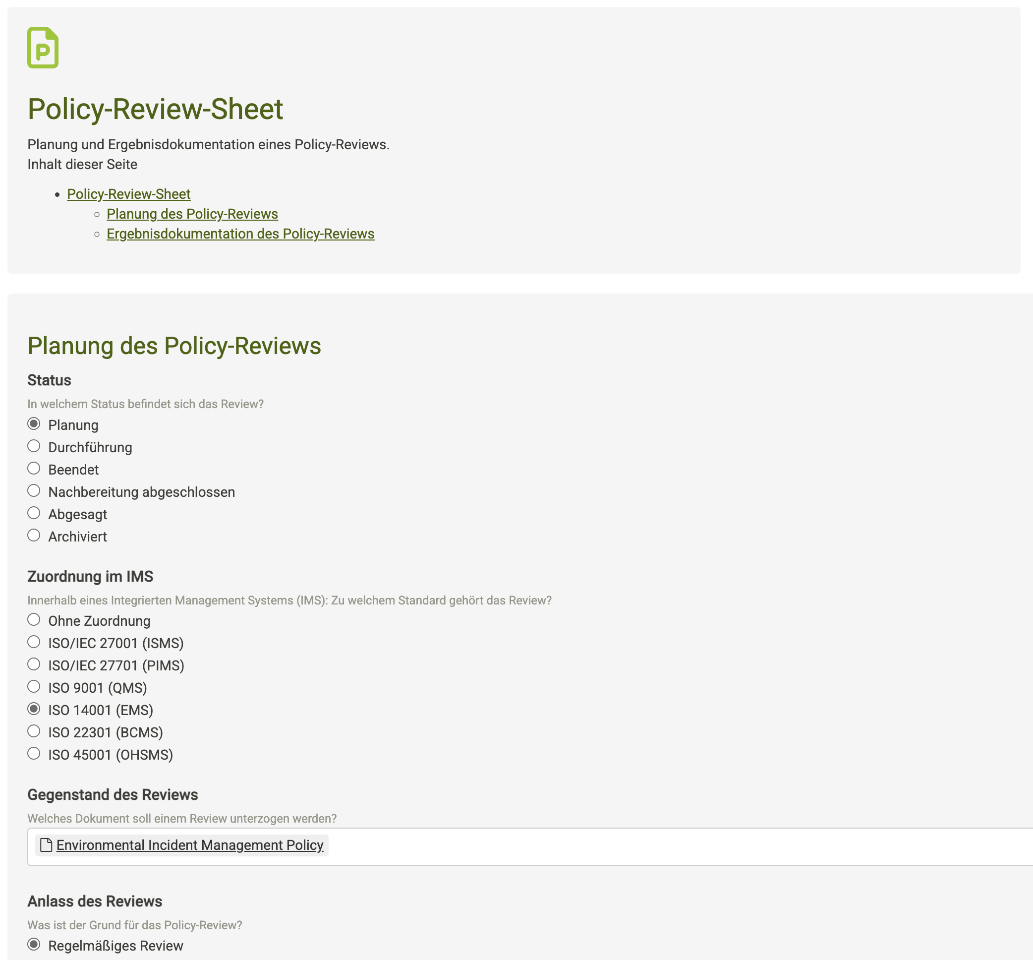 | Beispiele | 2 Beispiele für Policy-Reviews, 4 Beispiele für Policies |