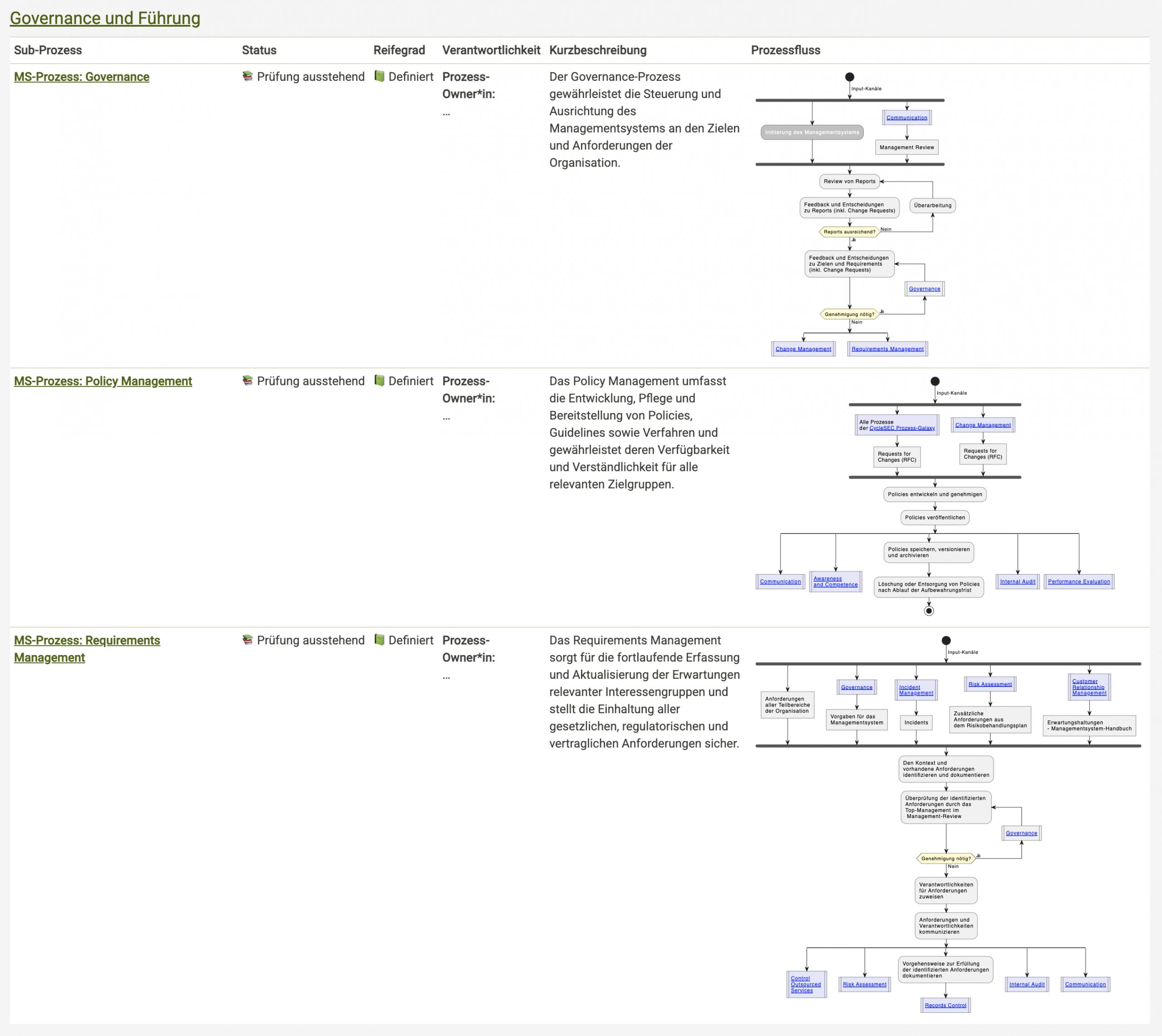 Ideal für Unternehmen und Organisationen, die eine Prozesslandkarte nach ISO/IEC Standards (Clause 4.4) etablieren möchten.
