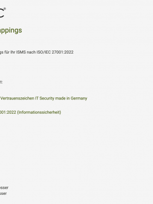 Falls Sie sich auf eine Zertifizierung nach BSI-IT-Grundschutz vorbereiten, sprechen Sie uns gerne auf ein individuelles Angebot für unser vollständiges BSI-Framework an.